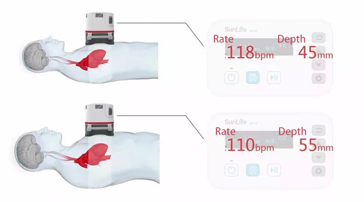 It might not be plausible for patients with different body type to use the same compression rate and depth. Doctors can achieve differentiated compression through the electrical control unit, adjusting the depth between 30 - 50mm, rate between 100 - 120 times/minute. Doctors can use different compression strategies for patients in ranged ages and body types according to clinical experience and resuscitation feedback.