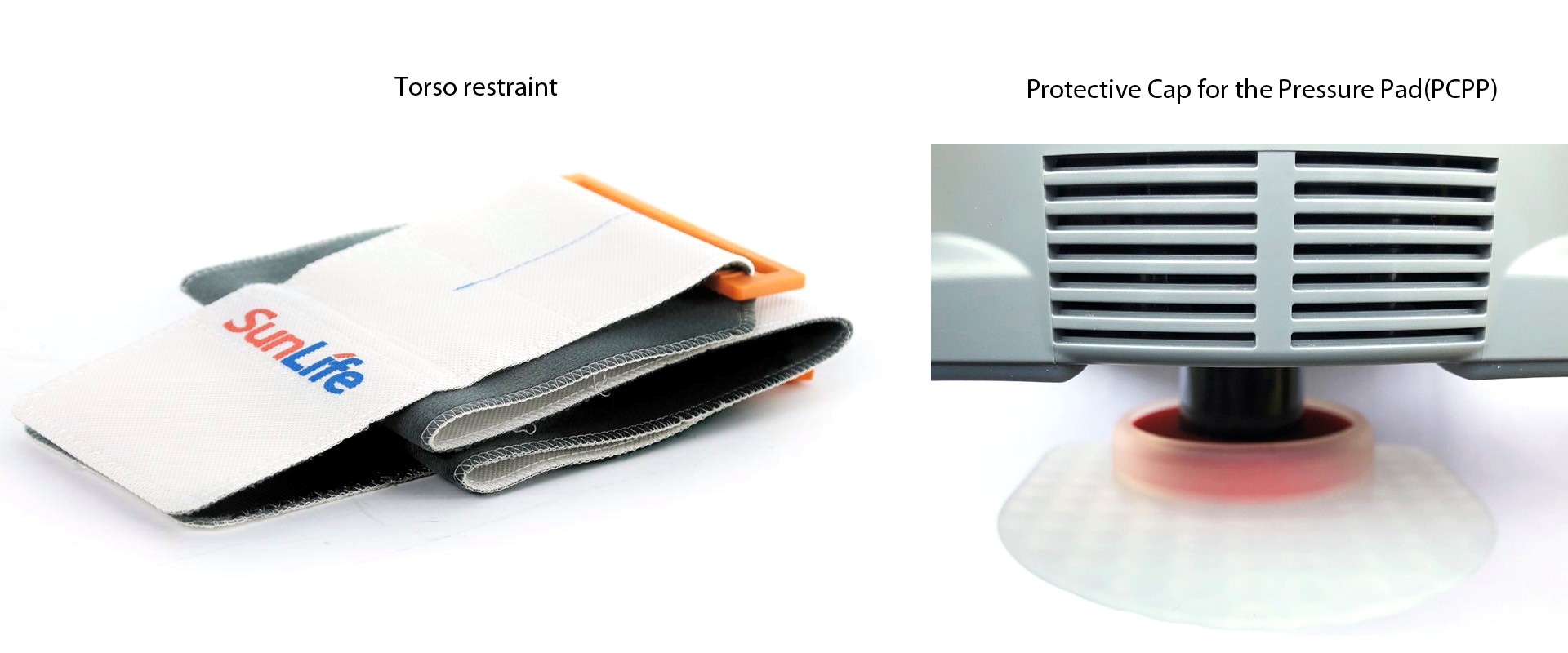 Patients get in close contact with compression pad and torso restraint, two accessories of MCC-E. These accessories are wash cleaned. The affordable price of these accessories also make them disposable in case of COVID-19 contamination.