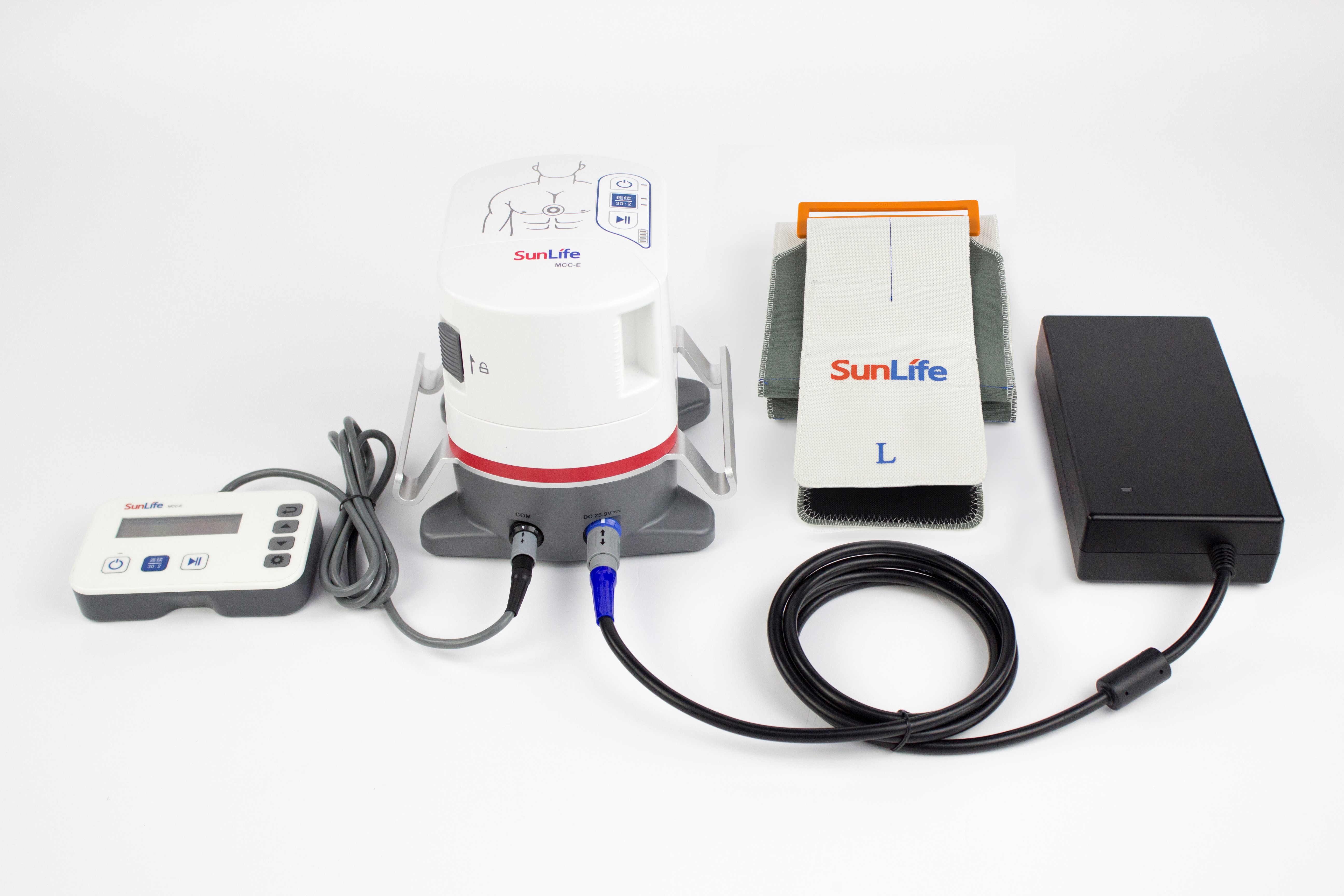 The electric transport cardiopulmonary resuscitation machine (Auto CPR) mentioned above, namely MCC-E produced by SunLife Science Medical company. MCC-E adopts the third-generation 3D compression technology, which combines the advantages of cardiac pump theory and thoracic pump theory. It can achieve higher efficiency and less injuries. MCC-E applies no backplane design, so that it can work normally in the not soft stretcher. It also can work at 45° tilt, breaking the limitation of horizontal transport during cardiopulmonary resuscitation. In addition, the device is equipped with lithium battery, can continuously work for at least 60 minutes, 220V AC plug and run. No need to worry about the power source.