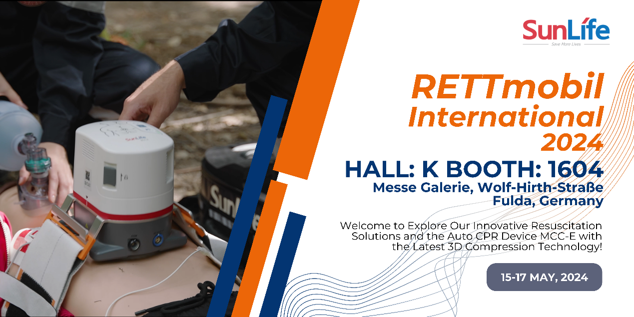 From 15-17 May, SunLife will bring its high-quality resuscitation solutions to RETTmobil International 2024. During the event, we will exhibit our star product MCC-E, the auto CPR machine equipped with the latest 3D compression technology. It is an ideal tool for providing high-quality CPR in complex environments, such as stairway transportation, ambulance transference and outdoor usage. Currently, the device has been installed in more than 4,000 hospitals globally.
